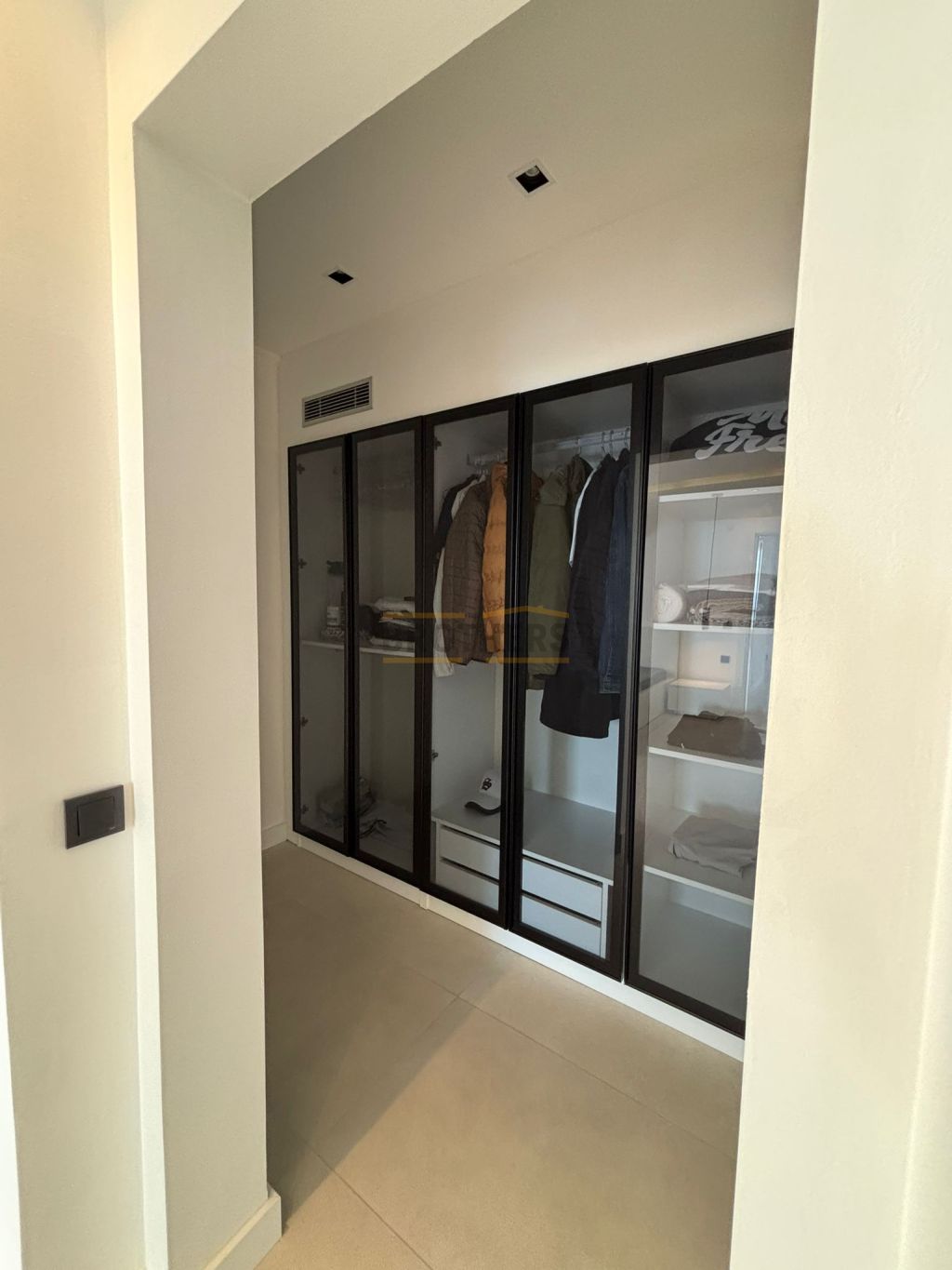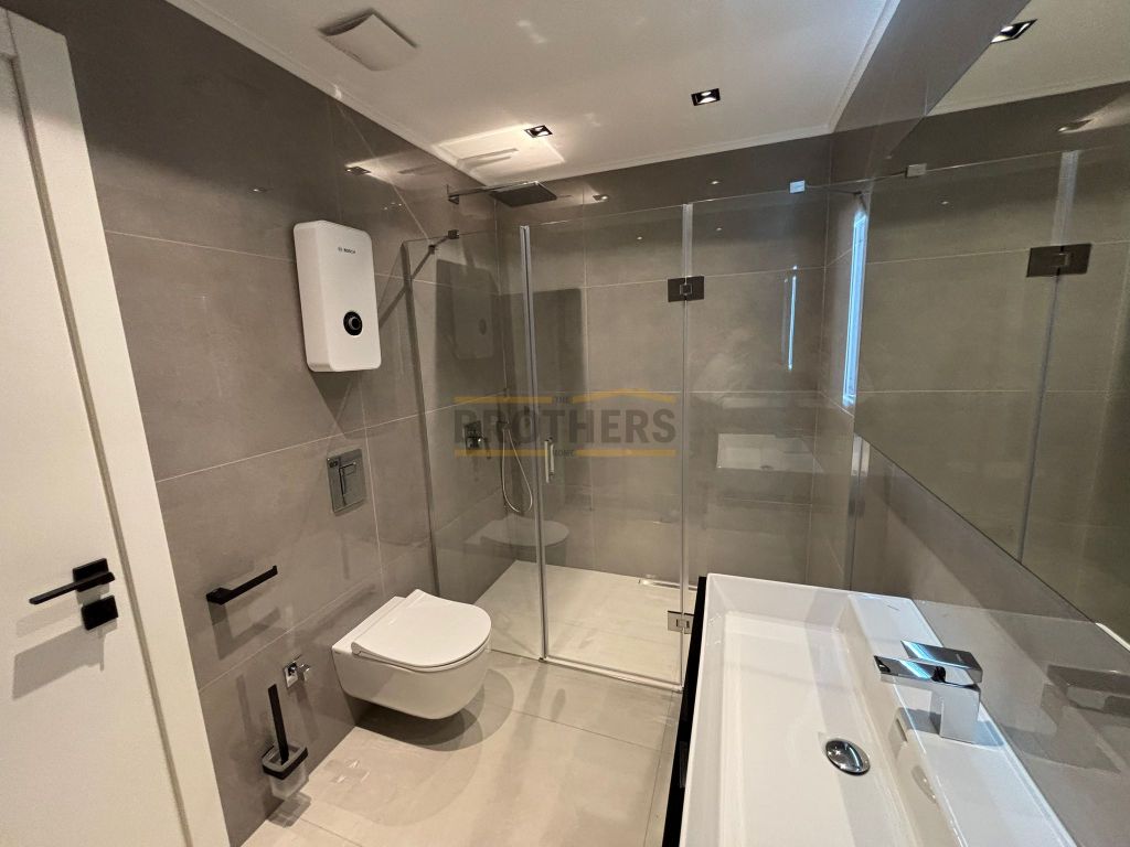 The 130m2 apartment consists of an open plan kitchen/ living room, 2 bedrooms ( one with en suite bathroom and dressing room ), 1 bathroom and 2 balconies.