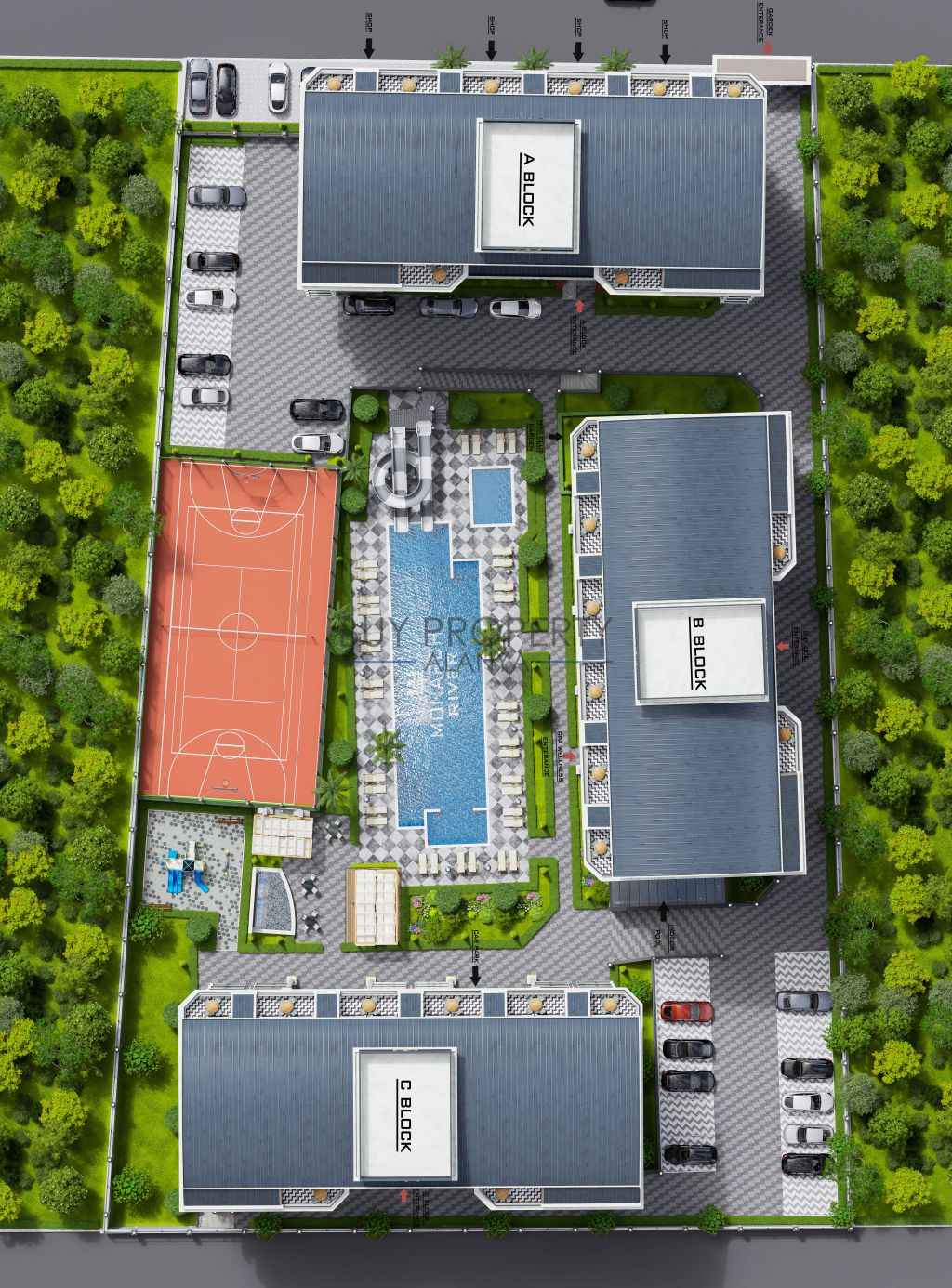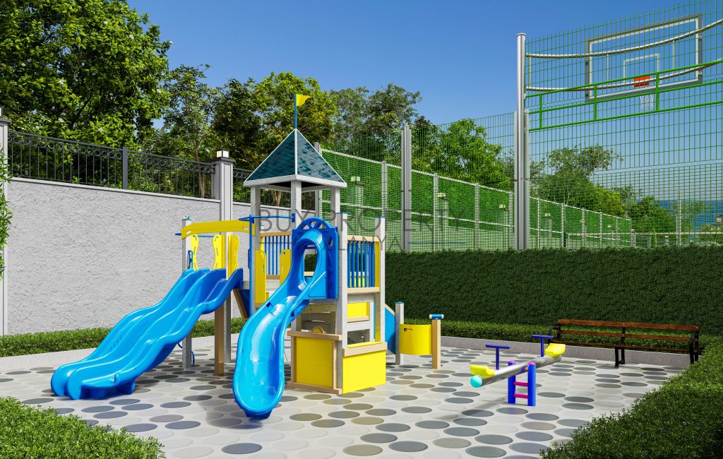 The complex is built on a 6645 m2 land and consists of 3 blocks with a total of 112 flats and 8 shops.