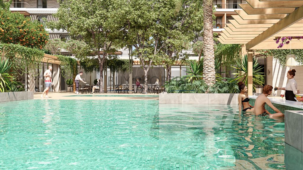 The outdoor area has a large swimming pool, beautiful walking paths with pergolas, childrens playground etc; where every detail has been carefully planned and considered!
